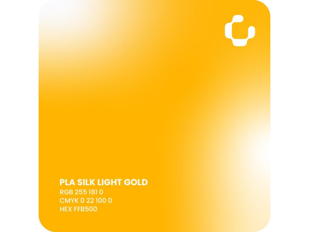 A PLA Silk Light Gold filament elegáns, selyemfényű arany színével látványos és sima felületű nyomatokat eredményez – tökéletes választás dekorációkhoz, figurákhoz és dizájnelemekhez.