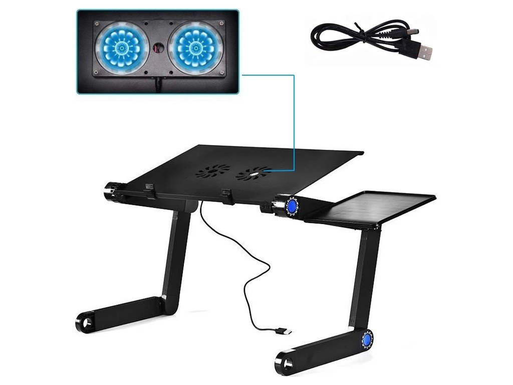 -Laptop és egér tartó tálcával illetve hűtőventilátorral látták el.